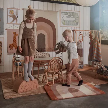 Follow the rainbow -seinäkoriste 100x124 cm OYOY:lta on leikkisä seinävaate, jossa on hapsuin viimeistelty villamatosta muodostuva sateenkaari. Käsinkudottu seinävaate sopii yhtä hyvin lastenhuoneeseen kuin olohuoneeseen.
