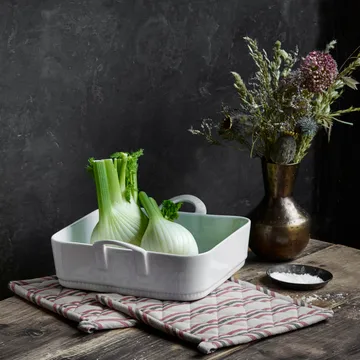 Toulouse-neliölautanen, kahvallinen, Pillivuytin uunivuoka vie ruoan uunista pöytään luonnollisella eleganssilla. Se vetää 3 litraa ja siinä on käytännölliset kahvat, jotka tekevät tarjoilusta turvallista ja helppoa. Valmistettu kestävästä posliinista, joka kestää nopeita lämpötilanvaihteluita -30 °C:sta +350 °C:seen, joten se sopii täydellisesti ruoan valmisteluun, pakastamiseen ja kypsentämiseen vaivattomasti. Posliinin lämmönjakautuminen pitää ruoan lämpimänä tarjoilun jälkeen, ja tukeva rakenne tulee elinikäisellä käyttöta takuulla ja kahden vuoden posliinitakuulla — luotettava valinta arjen ruoanlaittoon ja viikonlopun juhla-aterioihin