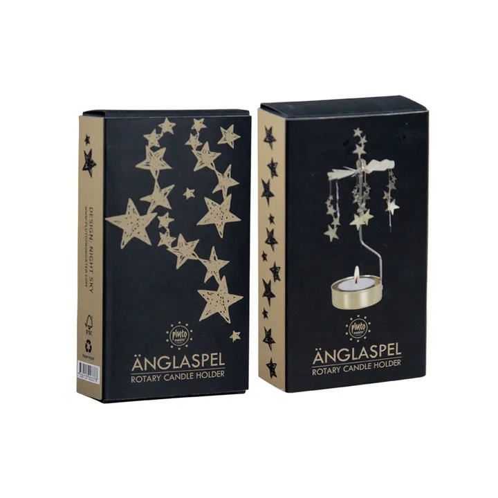Natthimmel enkelikello Ruotsin PlutoDesignilta tuo taivaan kaikki tähdet kauniiseen ja tunnelmalliseen kynttilänjalkaan. Kun sytytät tuikun, tähdet alkavat pyöriä. Natthimmel enkelikelloa arvostavat sekä isot että pienet ja se luo kodikkaan tunnelman huoneeseen, yhtä kaunis keittiössä kuin olohuoneessa