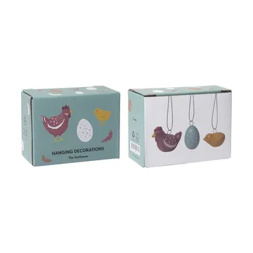 The Henhouse pääsiäiskoristeet 3 osaa Pluto Designilta tuovat pääsiäiskoristeluun ajatonta viehätystä. Valmistettu 100 % keramiikasta, nämä koristeet ovat sekä kestävät että kauniit. Täydelliset pääsiäisrisuun tai luomaan eleganttia kevättunnelmaa kotiin. Klassinen koriste, jota voi käyttää vuodesta toiseen.