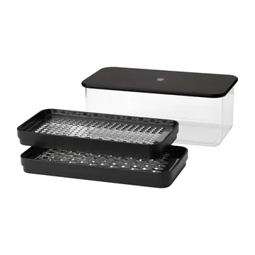 GRATE-IT raastinrauta säiliöllä RIG-TIGiltä on älykäs ja käytännöllinen raastin arkipäivän keittiökäyttöön. Setti sisältää kannellisen säiliön ja kaksi raastinta—karkeamman ja hienomman—jotka raastavat helposti vihannekset, hedelmät ja juuston suoraan keräysastiaan. Kannon ansiosta voit säilyttää ylimääräisen raasteen jääkaapissa ilman astian vaihtoa, ja raastimet kestävät tiskikonetta kun taas säiliö kannattaa pestä käsin. Yksinkertainen ratkaisu, joka säästää aikaa ja pitää työtason siistinä ruoanlaitossa ja valmisteluissa