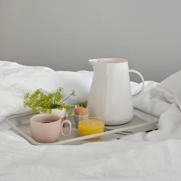 Hoito-ohjePuhdista kaatamalla haaleaa vettä ja kourallinen karkeaa suolaa kannuun ja ravistamalla, kunnes sisäosa on puhdas. Kaada astianpesuaine astiaan, täytä se kiehuvalla vedellä ja anna seistä noin tunnin ajan. Huuhtele kannu huolellisesti.