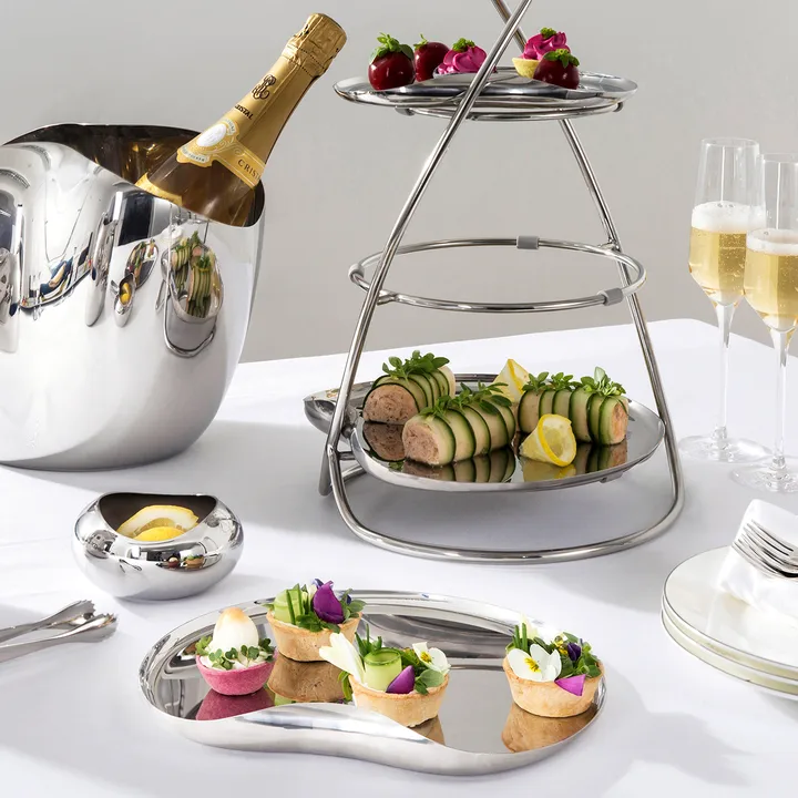 Drift tarjoiluvati, 25 cm Robert Welchiltä on tyylikäs ja ylellinen tarjotinalusta, suunniteltu afternoon tea mielessä. Vati on tyylikkäine kaarineen ja eri korkuisine reunoineen, jotka kiertävät ympäri, ja se sopii yhtä hyvin tarjoiluun kuin sivupöydälle koristealustaksi. Tarjotinaluksen mukana tulee elintarvikekelpoista silikonia oleva mattokin.