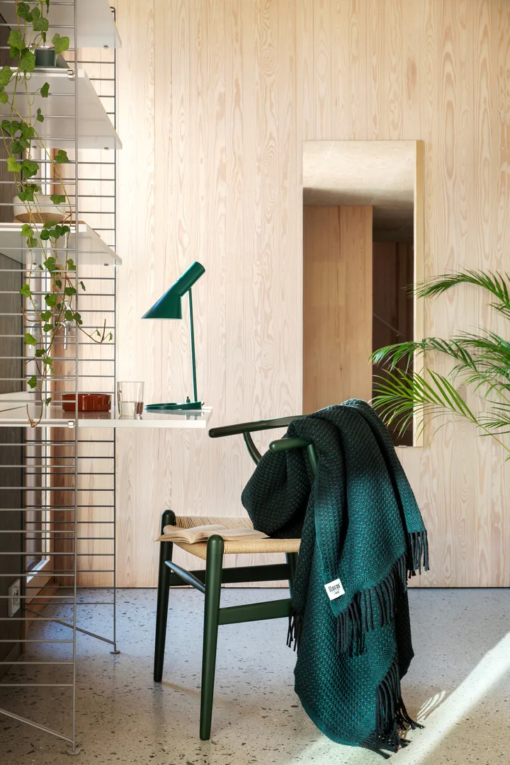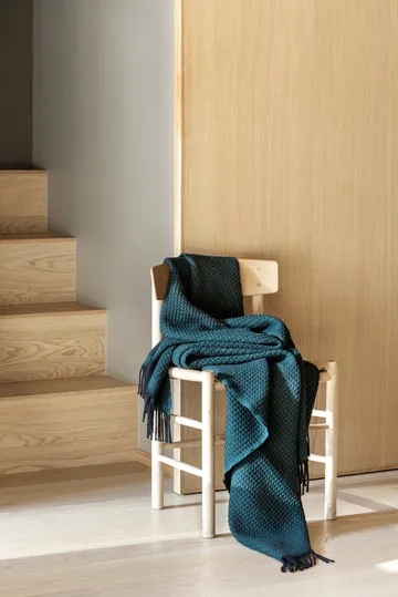 Vega peitto 150x210 cm Røros Tweediltä on valmistettu lampaanvillasta ja siinä on rakenteellinen ja ilmava muotoilu. Sen korikudos luo kolmiulotteisen volyymin, joka tekee siitä erityisen pehmeän ja lämpimän