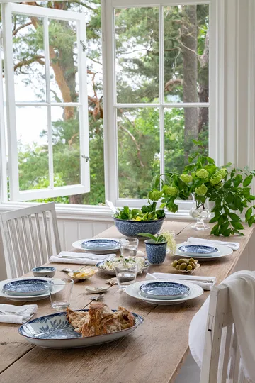 Ostindia Floris -tarjoilukulho tulee ruotsalaiselta Rörstrandilta ja se antaa kauniin säväyksen katetulle pöydälle. Tarjoile siitä vaikkapa maittava salaatti tai uusia perunoita! Ostindia on vanha klassikkosarja, josta Caroline Slotte on kehitellyt hieman uudistuneen sarjan, Ostindia Floris. Sarjat sopivat mainiosti käytettäviksi yhdessä!