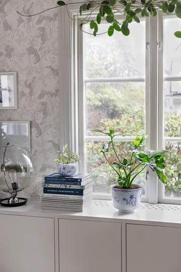 Ostindia ruukku Rörstrandiltä on valmistettu korkealaatuisesta kenttaspata-porsliinista. Ruukun nykyisin klassinen kuvio on saanut inspiraationsa pazarista, joka löytyi laivasta haaksirikkoutuneesta aluksesta vuonna 1745. Yhdistä porsliiniruukku lempikasviisi ja aseta pöydälle tai ikkunalaudalle