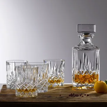 Royal Doulton -baarisetti, joka sisältää neljä lasia ja niihin sopivan karahvin englantilaiselta brändiltä Royal Doulton, on elegantti ja klassinen. Lasien kaunis timanttihionta korostaa juoman väriä ja taittaa valoa täydellisesti. Nyt voit tarjoilla viskin tyylillä. Barsetti on ylellinen lahja uuden kodin juhlaan, häihin, valmistujaisiin tai kaunis lahja itsellesi