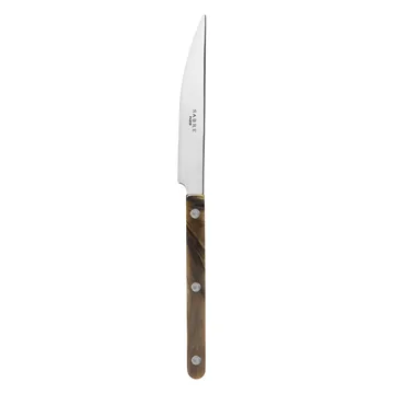 Bistrot ruokaveitsi ranskalaiselta merkiltä Sabre Paris on aterin, joka tuntuu sekä leikilliseltä että perinteiseltä. Aterin valmistetaan ruostumattomasta teräksestä ja sen korkealaatuiset akryyli- tai tiikkikahvat tehdään Sabre Parisin omalla tehtaalla Ranskassa. Valitse kahvoihin useista eri väreistä. Täydennä mielelläsi muilla Bistrot-sarjan aterimilla, kuten ruokahaarukalla ja ruokalusikalla.