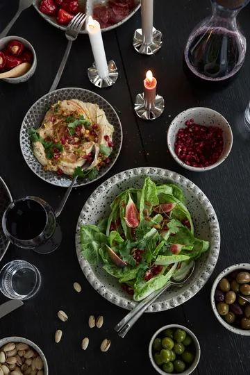 Ditte syvä tarjoilulautanen Sagaformilta on suurempi kivitavarasta valmistettu tarjoilukulho, joka sopii salaatille, leivälle tai hedelmäsalaatille. Käsin valmistetussa kulhossa on roiske-kuvio, joka tekee jokaisesta kappaleesta yksilöllisen, sekä reuna, jota koristavat pienet pastillit – näyttävä katseenvangitsija katetulla illallispöydällä. Yhdistele muihin Sagaformin Ditte-sarjan tuotteisiin yhtenäisen ja tyylikkään kattauksen luomiseksi