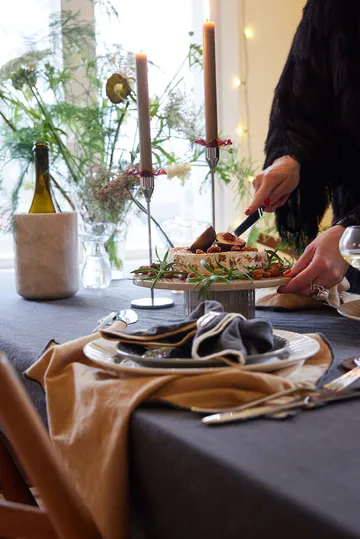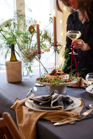Edith lautasliina 45x45 cm 2-pack från Sagaform on valmistettu 70% kierrätetystä puuvillasta ja 30% kierrätetystä polyesteristä. Viehättävällä kontrastivärisellä reunasaumalla se antaa koristeellisen kosketuksen kattaukseesi. Täydellinen kaikkiin vuodenajan tilaisuuksiin