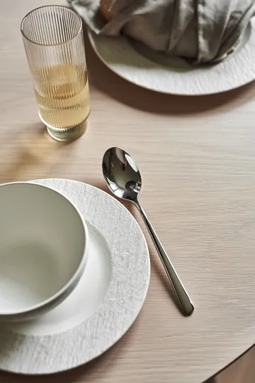 Polar aterinsetti 24 osaa Scandi Livingilta on elegantti setti korkealaatuista ruostumatonta terästä, jossa jokainen yksityiskohta on huolellisesti muotoiltu sekä tuntuman että toimivuuden ehdoilla. Haarukan, ruokalusikan ja kahvilusikan varsi on takaa litteä ja edestä pyöristetty, kun taas veitsi on pehmeästi muotoiltu kokonaisuus — mikä takaa tasapainoisen otteen ja miellyttävän kädentuntuman. Polar-aterinsetti sopii yhtä hyvin arjen aterioille kuin juhlavampiin kattauksiin ja nousee nopeasti keittiön suosikiksi