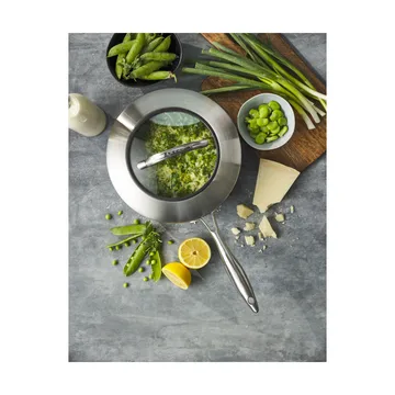 Scanpan CTX korkeareunainen syvä kannellinen paistinpannu kuuluu Scanpanin testivoittajasarjaan, jossa kestävä Stratanium non-stick-pinnoite yhdistyy tyylikkääseen harjattuun ruostumattomaan teräkseen. Pannun alumiinisydän reagoi nopeasti lämpötilan muutoksiin, kun taas ergonominen ruostumattomasta teräksestä valmistettu kahva pysyy viileänä jopa käytön aikana. Pyöreän muotonsa ja erityisen korkeiden reunojensa sekä kestävän non-stick-pinnoitteen ansiosta pannu sopii erinomaisesti kastikepohjaisten ruokien valmistukseen, ja käytännöllisen lasikannen ansiosta voit tarkistaa ruoan ilman, että kansi täytyy nostaa ja päästää lämpöä karkuun.