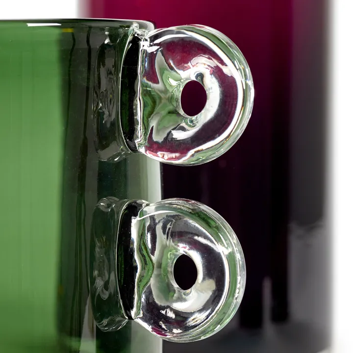 Wind & Fire -maljakko kahvalla 18 cm Seraxilta on sylinterinmuotoinen, suupuhalletusta lasista valmistettu maljakko, jossa on koristeellisia yksityiskohtia ja leikkisä ilme. Yhdistä Wind & Fire -kokoelman eri maljakoita dynaamisen kokonaisuuden luomiseksi