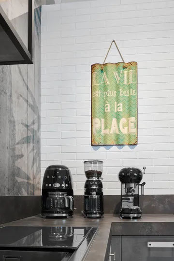 Ruostumattomasta teräksestä ja muovista valmistettu Smeg 50's Style 10-kuppinen kahvinkeitin tarjoaa nopean valmistuksen ja aromin voimakkuuspainikkeen täydellistä makua varten. Lämpimänäpitotoiminnolla, joka pitää kahvin kuumana 40 minuuttia, ja tippapysäytystoiminnolla jatkuvaa keittämistä varten. Mukana kahvimittari jauhettua kahvia varten.