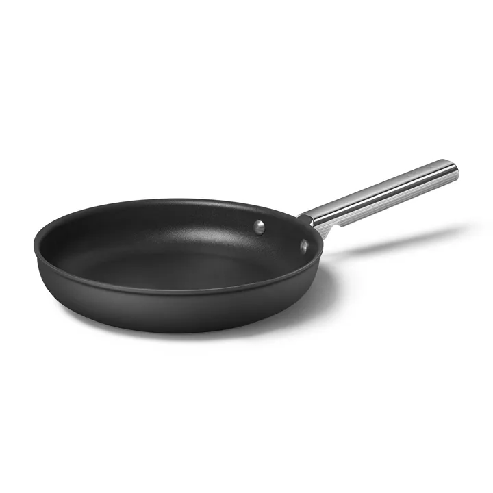 SMEG 50's Style paistinpannu Ø26 cm on retrohenkinen paistinpannu kylmävaletusta alumiinista, jonka sisäpinnassa on tarttumaton non stick -pinnoite estämässä ruoan palamista. Alumiinipannun alapuoli on ruostumatonta terästä ja siinä on pitkä kiillotetusta ruostumattomasta teräksestä valmistettu kahva, joka tarjoaa hyvän otteen. Smeg-paistinpannulla voit alkaa paistaa ruokia liedellä ja viimeistellä ne uunissa, sillä pannu kestää uunin lämpöä jopa 250 °C