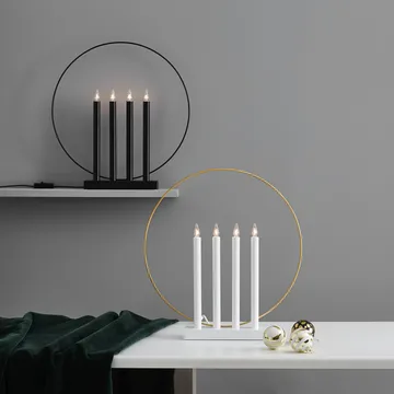 Glory adventtikynttilänjalka Star Tradingilta on valmistettu lakatusta puusta ja siinä on 4 metallista kynttilänpidintä. Kuten nimi kertoo, kynttilänjalka on muodoltaan gloria, jonka ympärillä on ohut metallirengas, mikä antaa sille modernin ilmeen. Kynttilänjalka levittää lämpimän ja kodikkaan valon sytytettynä ja on kaunis yksityiskohta ikkunaan joulun alla. Valitse eri väreistä