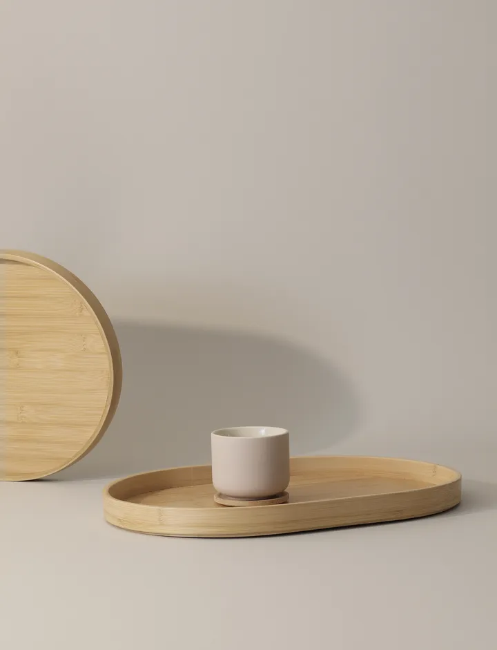 Theo-tarjotin 28,5x40,5 cm Steltonilta on toiminnallinen ja tyylikäs osa Theo-kokoelmaa. Francis Cayouetten suunnittelema tarjotin on valmistettu kestävästä bambusta ja saanut inspiraationsa aasialaisesta teekulttuurista. Tämä tarjotin tarjoaa sekä kantokyvyn että kauniin skandinaavisen estetiikan, tehden siitä täydellisen luomaan rauhallisen ja harmonisen tunnelman teen tai muiden juomien tarjoiluun
