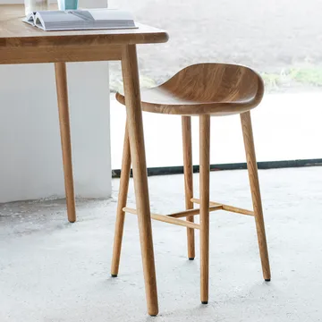 Miss Holly -baarituoli K63 cm Stolabilta on kunnianosoitus käsityölle ja rakkaudelle puuhun. Jonas Lindvallin suunnittelema tuoli on valmistettu tukevasta massiivipuusta. Istuimen viimeistely heijastaa huolellista käsityötä: osat jyrsitään, liimataan ja työstetään tarkasti parhaan mahdollisen mukavuuden takaamiseksi. Ruostumattomasta teräksestä valmistettu jalkatuki täydentää kokonaisuuden ja kuuluu aina varusteluun. Saatavilla kahtena korkeutena joustavaan käyttöön. Lisää sisustukseen ripaus eleganttia puunlaatua tällä esteettisesti miellyttävällä baarituolilla