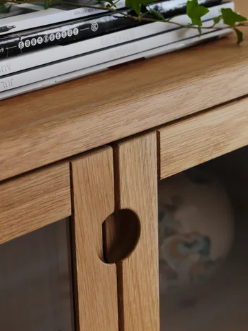 Prio vitriinikaappi Stolabilta on osa Prio-sarjaa, suunnitellut Måns Sjöstedt/Yellon. Se on massiivipuinen koivusta tai tammesta ja tarjoaa mahdollisuuksia yksilöllisiin pintakäsittelyihin. Täysin puusta valmistettuna tämä vitriinikaappi antaa ylellisen ja luonnonläheisen tunteen. Eleganteiksi puuelementeiksi luettavat yläosan uurteet ja vetimet sekä pyöristetty jalkaosa korostavat puun luonnollista kauneutta ja tekevät tästä vitriinistä ihanteellisen erilaisiin sisustustyyleihin. Säädä se oman makusi ja sisustuksesi mukaan