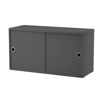String kaappi liukuovella on suunnitellut Nisse Strinning. Tämä kaappi sopii täydellisesti sekä String Systemiin että String Plexiin. Strinning tuli tunnetuksi vuonna 1949 yhdessä vaimonsa Kajsan kanssa luodusta String-hyllyjärjestelmästä, ja tämä kaappi on ajaton jatke heidän tunnusomaiselle muotoilulleen ja toiminnallisuudelleen
