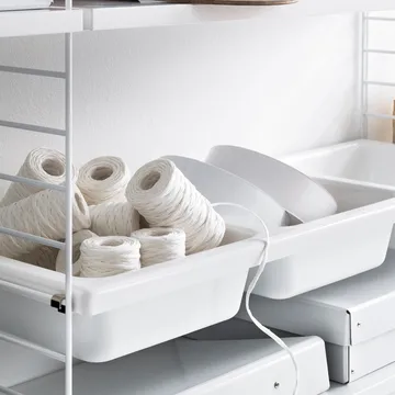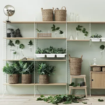 String kuppihylly yhdistää käytännöllisen toiminnallisuuden ja elegantin muotoilun. Anna von Schewenin ja Björn Dahlströmin suunnittelema hylly on kaunis lisä kotiisi. Klassinen lankarakenne antaa tilaa luovuudelle ja joustavuudelle, jotta voit räätälöidä ja muokata hyllyjärjestelmää tarpeidesi mukaan. Tutustu tämän kulttiklassikon eri väreihin ja versioihin, jotka perustuvat String-hyllyn ajattomuuteen