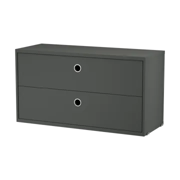 String laatikosto Stringilta, suunniteltu Nisse Strinningin toimesta, on osa klassista String-hyllyä. Tämä laatikosto sisältää kaksi laatikkoa pyöreillä vetimillä, kuten sarjan kaappien ovet. Sopii täydellisesti kaikkiin String Systemin 30 cm syviin lankka- ja plex-sivupaneeleihin. Yhdistä vapaasti luodaksesi oman säilytysjärjestelmäsi. Tutustu rajattomiin mahdollisuuksiin String System -komponenteilla