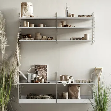 String Outdoor seinäpääty Stringista on ulkokäyttöön soveltuva osa ikonista String-hyllyjärjestelmää. Kuumasinkitystä teräksestä valmistettuna se kestää ankaraa pohjoismaista säätä, täydellinen joustavaan ulkosäilytykseen. String suunniteltiin alun perin 1949 Nisse Strinningin toimesta ja on ollut suosittu siitä lähtien. Tämä versio antaa mahdollisuuden laajentaa String-järjestelmän ajattoman eleganssin ja toiminnallisuuden ulos heijastaen klassista ulkonäköä ja monipuolisuutta käytössä. Yhdistä muihin Stringin ulkotuotteisiin täydellisen puutarasetin luomiseksi