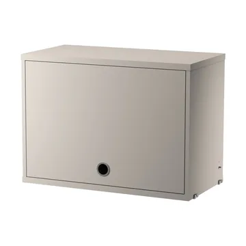 String yläkaappi 78 cm String yläkaappi Stringilta on toimiva ja tyylikäs ratkaisu säilytystarpeisiisi. Kaappi, jossa on kaasujousitettu luukku, avautuu sujuvasti ylöspäin ja soveltuu erinomaisesti keittiön säilytykseen tai osaksi vaatehuoneen ratkaisua. Se integroituu saumattomasti kaikkiin 30 cm syviin String®-järjestelmän lankaja plex-paneeleihin, ja säädettävä sisähylly tarjoaa lisää joustavuutta erilaisten esineiden säilytykseen. Optimoitu järjestelmälliseen ja muunneltavaan kodin ympäristöön