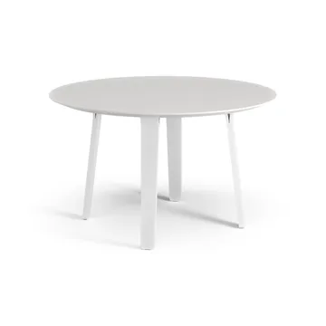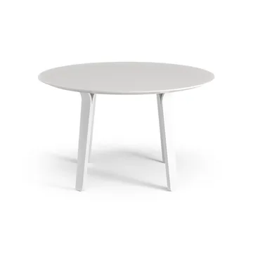 Divido pöytä Ø 120 cm ruotsalaiselta Swedeseltä on pyöreä pöytä, jossa on sileä pöytälevy laminaattia tai viilua sekä neljä hieman litteämmäksi muotoiltua, lasitetusta saarnesta valmistettua jalkaa, mikä tekee pöydästä erityisen omaleimaisen. Jokaisessa jalassa on liukunasta, joka suojaa sekä lattioita että mattoja