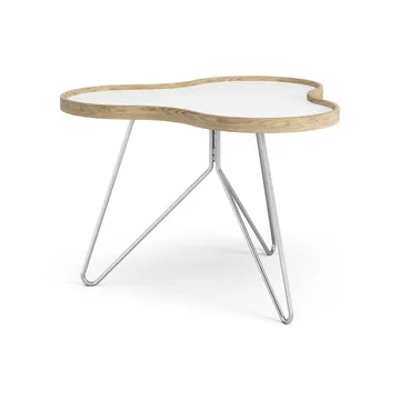 Flower pöytä 62 x 66 cm ruotsalaiselta Swdeselta on pieni, matala pöytä, jossa on kukkaa muistuttava laminaattikansi ja teräsjalka. Pöydän matalan muotoilun ansiosta se sopii erinomaisesti sohvapöydäksi, valitsitpa minkä leveän Flower-pöydän tahansa.