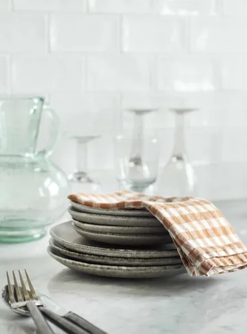 Gingham-ruudullinen pellavalautasliina 45 x 45 cm Gingham-ruudullinen pellavalautasliina 45 x 45 cm Tell Me Morelta on klassinen servietti pehmeästä pellavasta, joka luo kattaukseen lämpimän ja kodikkaan tunteen. Euroopassa viljelty pellava on imevää, nopeasti kuivuvaa ja kestää toistuvaa käyttöä – täydellinen arki-illallisille ja juhlatilaisuuksiin. Ruudullinen malli antaa luonnetta ottamatta liikaa tilaa, ja servietti toimii yhtä hyvin yksinään kuin sekoitettuna muiden värien kanssa tai yhdessä yhteensopivien pöytätekstiilien kanssa kutsuvan kattauksen luomiseksi. Kätevä ja kaunis yksityiskohta, joka nostaa ruokailuhetken arvoa