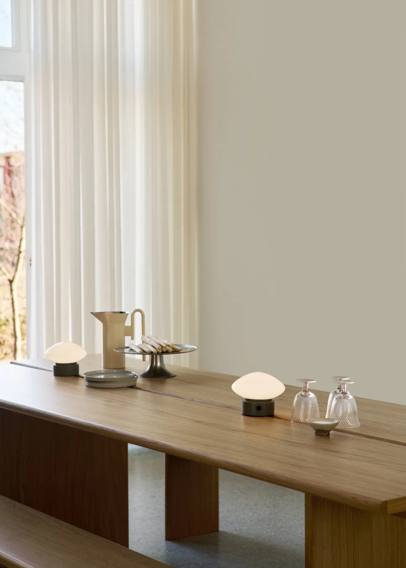 Mist AP21 kannettava lamppu 12 cm from &Tradition on pieni mutta ilmeikäs lamppu, joka yhdistää toiminnallisuuden ja veistoksellisen muotoilun. Langaton rakenne tekee siitä helpon sijoittaa minne tahansa kodissa – sohvapöydälle, kirjahyllyyn tai tunnelmalliseksi valaistukseksi ruokapöydälle. Pehmeä lasikupu levittää lämpimän ja miellyttävän valon, kun taas tukeva marmorialusta antaa elegantin painon ja kontrastin. Joustava ja ajaton valaistusratkaisu, joka tuo arkeen sekä tunnelmaa että tyyliä