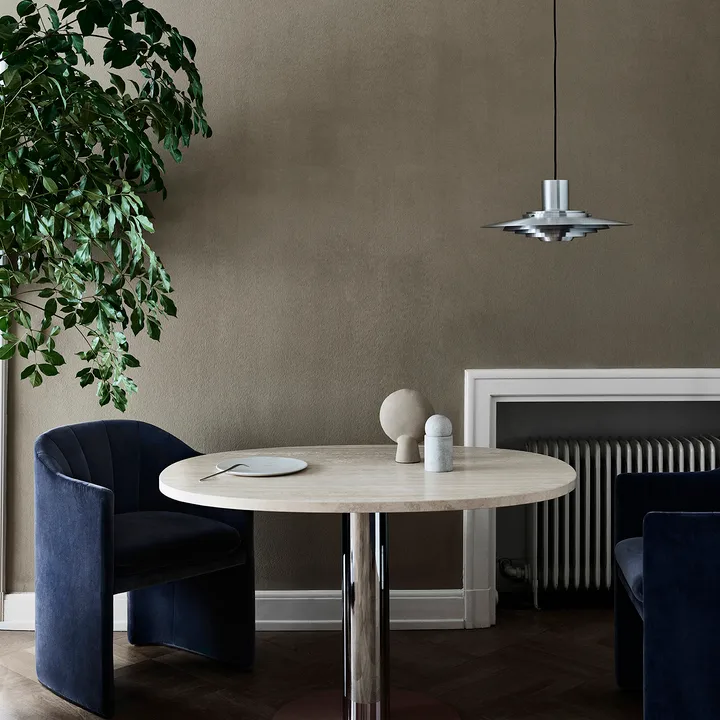 P376 kattolamppu KF1 &Traditionilta on ajaton riippuvalaisin, jonka Kastholm & Fabricius suunnittelivat jo vuonna 1963. Lamppu kunnioittaa alkuperäistä muotoilua viidellä konsentrisella varjostimella, jotka asettuvat hienovaraisesti toistensa alle ja tuottavat pehmeän, diffuusin valon, joka luo miellyttävän tunnelman kotiin. P376 sopii ruokapöydän ylle, eteiseen tai olohuoneen näyttäväksi katseenvangitsijaksi ja yhdistää tyylitajun ja toiminnallisuuden. Elegantti uudelleenlanseeraus, joka on yhtä ajankohtainen nyt kuin suunnitteluhetkellään.