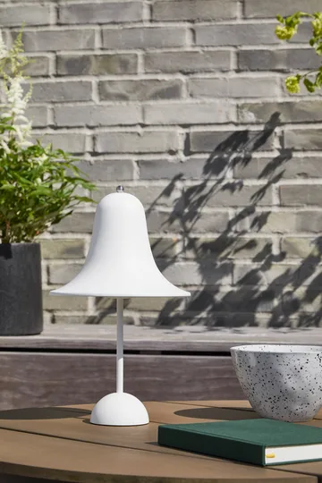 Pantop portable -pöytävalaisin 30 cm from Verpan on kannettava versio Verner Pantonin klassikkosuunnittelusta vuodelta 1980. Lamppu tarjoaa maksimaalista joustavuutta ja sen voi helposti siirtää huoneesta toiseen tai käyttää ulkona parvekkeella tai puutarhassa halutun tunnelman luomiseen. Ladattavan akun ansiosta sijoittaminen on vaivatonta, ja kolmitasoisella himmentimellä voi säätää valon kirkkauden tarpeen mukaan. Pantop portable yhdistää ikonisen muotoilun, toiminnallisuuden ja modernin tekniikan — koristeellinen ja käytännöllinen lamppu koko kotiin ja ulkotiloihin