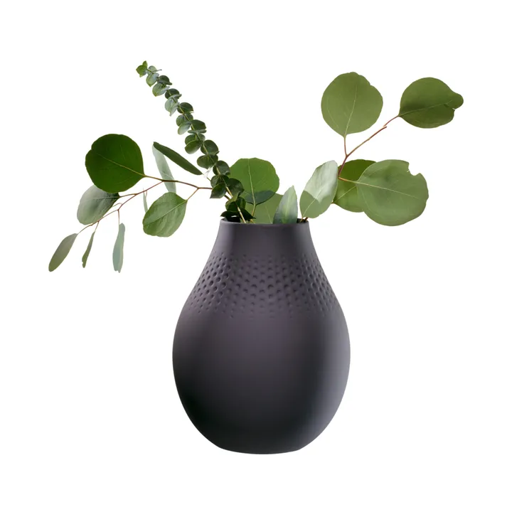 Collier Noir Perle maljakko on pehmeä ja pisaranmuotoinen, porsliinivalmistaja Villeroy & Boch:n suunnittelema maljakko. Se on valmistettu laadukkaasta posliinista mattapintaisena, mikä korostaa pieniä ympyröitä muistuttavaa kuviota, joka ulottuu kapeaan kaulaan asti. Maljakko kuuluu merkin moderniin Collier-sarjaan ja sitä voi yhdistää muiden eri kokoisten ja väristen maljakoiden kanssa kauniin kodin sommittelun luomiseksi. Se toimii yhtä hyvin myös yksinään, yksinkertaisen ja kauniin leikkokukan kanssa.