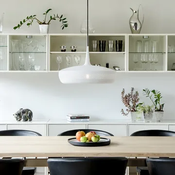 Clava Dine kattolamppu Ø 43 cm on Umagen lamppu, jonka tyylikäs retromuoto antaa 70‑luvun tunnelman, samalla kun se tuntuu trendikkäältä ja nykyaikaiselta. Lampun perforointi luo oikean, miellyttävän valonpinnan ruokapöytäsi ylle riippumatta siitä ripustatko sen ruokasaliin vai keittiöön