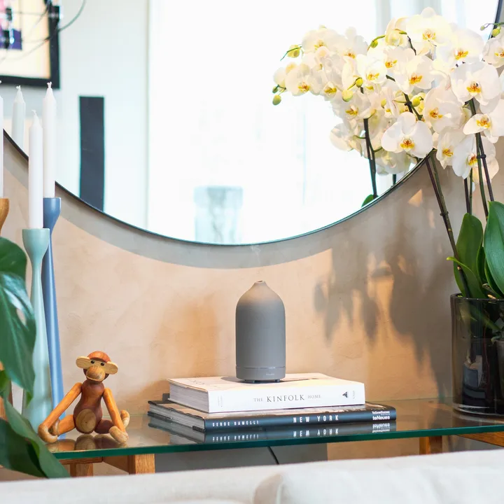 Kividiffuuseri 10 cl Volantilta on käsintehty kivi-diffuuseri, joka levittää eteerisiä öljyjä pehmeällä, viileällä sumulla ja täyttää kodin rauhalla ja hyvinvoinnilla. Mattaistuinen keramiikkapinta ja ajaton muoto sulautuvat sisustukseen, ja jokainen kappale on ainutlaatuinen käsityön ansiosta. Pieni värähtelevä levy hienontaa öljyt mikropartikkeleiksi, jotka liikkuvat kuin kevyt höyry – täydellinen iltarauhoittumiseen tai miellyttävän tunnelman luomiseen makuuhuoneeseen tai olohuoneeseen. Helppo käyttää ja helppo rakastaa