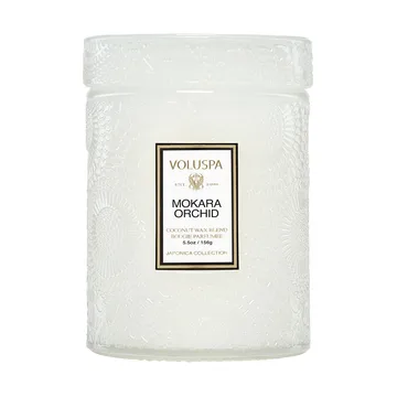 Japonica on pieni tuoksukynttilä lasipurkissa Voluspalta. Käsintehty tuoksukynttilä on valmistettu ftalaatiton, parabeeniton ja sulfaatiton kookosvahasekoite. Lasipurkki kannella on kauniisti reliefikuvioitu pinta, joka tekee tuoksukynttilästä koristeellisen sisustuselementin samalla kun se levittää miellyttävää tuoksua kotiin