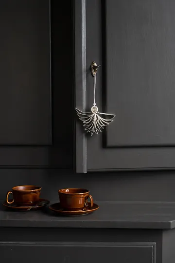 Angel joulukoriste Ø10 cm Watt & Vekeiltä on abstrakti muotoilu, joka esittää enkeliä hennon siipineen ja pyöreällä päällä, jossa on helmi sen yläpuolella. Joulukoriste ripustetaan helposti joulukuuseen tai ikkunaan mukana tulevalla narulla. Anna enkelin luoda kodin taianomainen jouluinen tunnelma ja yhdistä se muihin koristeisiisi.