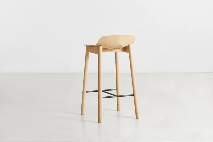 Mono baarijakkara 65 cm tanskalaiselta Woudilta on tyylikäs baarijakkara, jonka on suunnitellut suomalainen muotoilija Kasper Nyman tanskalaiselle merkille Woud. Baarijakkara on valmistettu massiivisesta tammesta, ja sen istuin on vaneria ja tammuviilua; se syntyi uudesta tavasta ajatella muotoilua