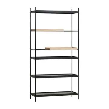 Tray hylly korkea tammi, 100x201 cm tanskalaiselta Woudilta on avoin kirjahylly, jossa on kuusi erikokoista hyllytasoa, suunnittelijana Hanne Willmann. Korkeassa hyllyssä on esteettinen symmetria ja selkeät linjat, ja se on muotoiltu sopimaan juuri sinulle. Valitse suosikkiyhdistelmäsi asettelemalla tarjottimet rungon eri tasoille. Pienet hyllytasot mahdollistavat sen, että korkeammat esineet, kuten kaunis maljakko, pääsevät oikeuksiinsa.