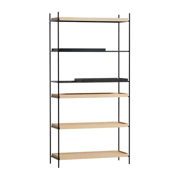 Tray hylly korkea tammi, 100x201 cm från danska Woud on avoin kirjahylly, jossa on kuusi eri kokoista hyllytasoja, muotoilija Hanne Willmann. Korkea hylly on esteettisesti symmetrinen suorine linjoineen ja suunniteltu sopimaan juuri sinulle. Valitse oma suosikkikombinaatiosi sijoittamalla tarjottimet rungon eri tasoille. Hyllyssä on pienet hyllytasot, jotka mahdollistavat korkeampien esineiden, kuten kauniin maljakon, sijoittamisen