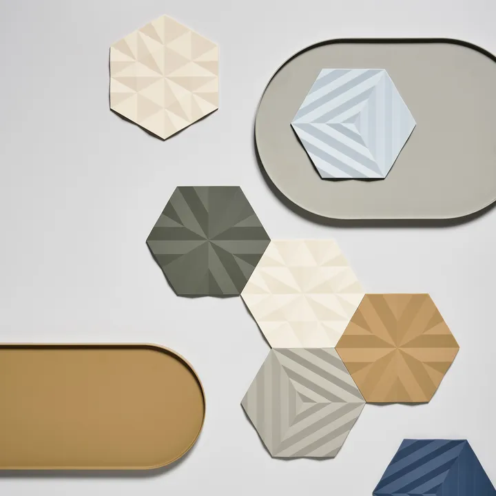 Ori Flake -pannunalunen 14x16 cm from Zone Denmark on kuusikulmainen pannunalunen, jonka hillitty kuvio koristaa ruokapöytää ilman että se varastaa huomiota ruokalistalta. Nimi Ori tarkoittaa taitosta, mikä sopii hyvin pannunalusen jääkiteenomaiseen kuvioon, jossa valo ja varjot luovat leikkisän ilmeen