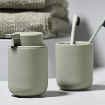 Ume saippuapumppu Zone Denmarkilta on valmistettu kivitavarasta ja siinä on miellyttävä soft touch -pinta. Saippuapumpussa on tyylikäs ja minimalistinen muotoilu sekä käytännöllinen pitkä nokka, mikä tekee siitä vakiovarauksen pesualtaan äärellä. Yhdistä mieluusti muihin palkittuun Ume-kylpyhuonesarjaan kuuluviiin tuotteisiin yhtenäisen ilmeen saamiseksi kylpyhuoneeseesi