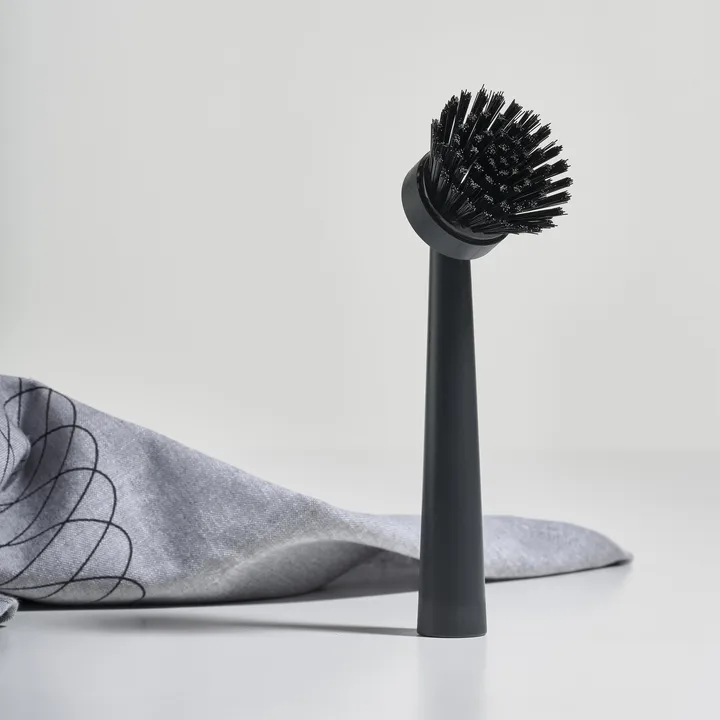 Zone Denmarkin Zone-tiskiharja on mukava pitää esillä tiskipöydällä. Se pysyy seisomassa, minkä ansiosta se kuivuu nopeasti. Harjan pää on vaihdettava.