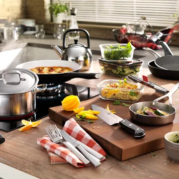 Zwilling Gourmet -kokkiveitsi on täydellinen monitoimiveitsi sekä aloittelijalle että kotikokin ammattilaiselle. Kokkiveitsi on kokonsa puolesta erinomainen kaikkeen vihannesten ja yrttien silppuamista kala- ja lihaleikkeisiin. Robusti veitsi on tasapainoinen, kevyt ja istuu hyvin käteen ergonomisesti muotoillun ja pitävän kahvan ansiosta. Terä on valmistettu Fridour-ishärdytetystä korkealaatuisesta ruostumattomasta teräksestä