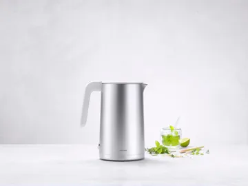 Zwilling sähköinen vedenkeitin 1,5 L antaa 360° liikkeen ilman johtoa. Kaksoisseinärakenteensa ansiosta se säilyttää lämmön ja pitää ulkopinnan viileänä. Kansi avautuu 70° vähentäen höyryä, ja ylikuumenemissuoja automaattisella sammutuksella takaa turvallisen käytön. Kalkkisuodatin parantaa makukokemusta ja saumaton muotoilu helpottaa puhdistusta. Suunnittelijat Matteo Thun ja Antonio Rodriguez