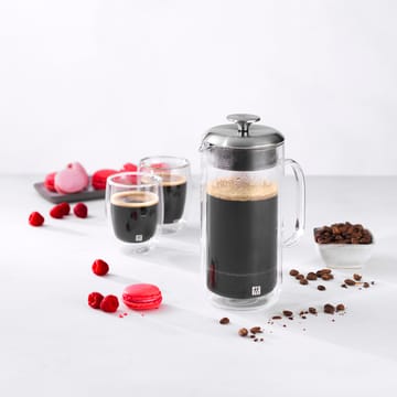Zwilling Sorrento -pressopannu saksalaiselta Zwillingiltä tarjoaa nopeasti ja helposti vastajauhetun ja aromaattisen kahvin. Kahvi valmistuu suoraan pannussa ja puristetaan alas kannessa olevan suodattimen avulla. Pannu pitää kahvin lämpimänä pitkään ja tyylikkään muotoilunsa ansiosta kahvin voi tarjoilla suoraan pannusta.